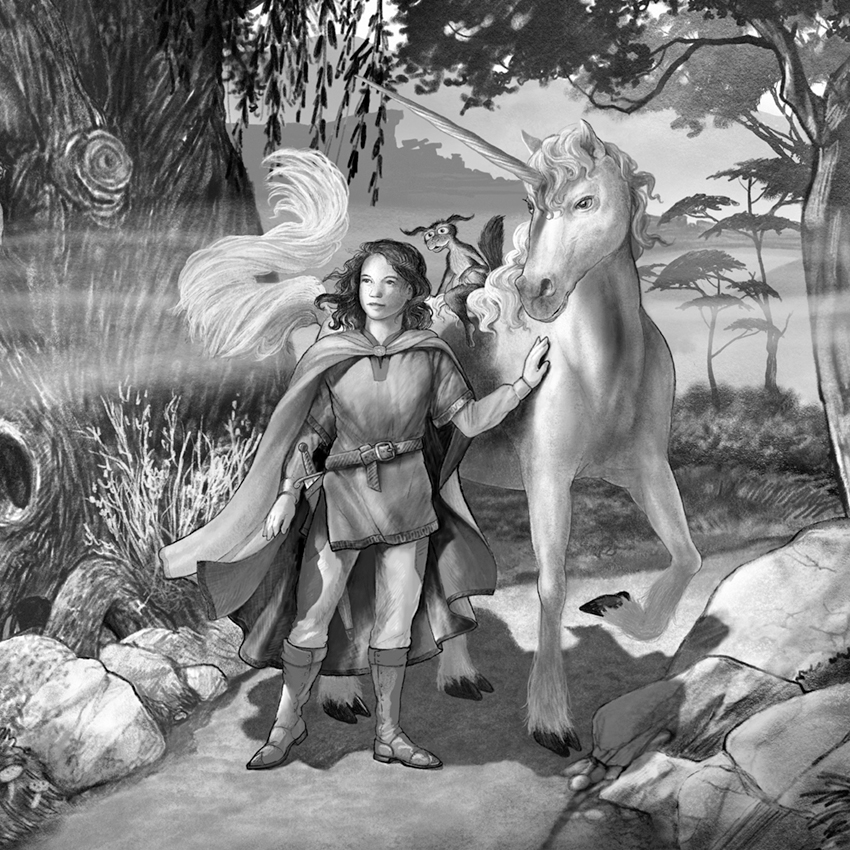 Color version of the Unicorn Chronicles illustration originally done for the paperback set.